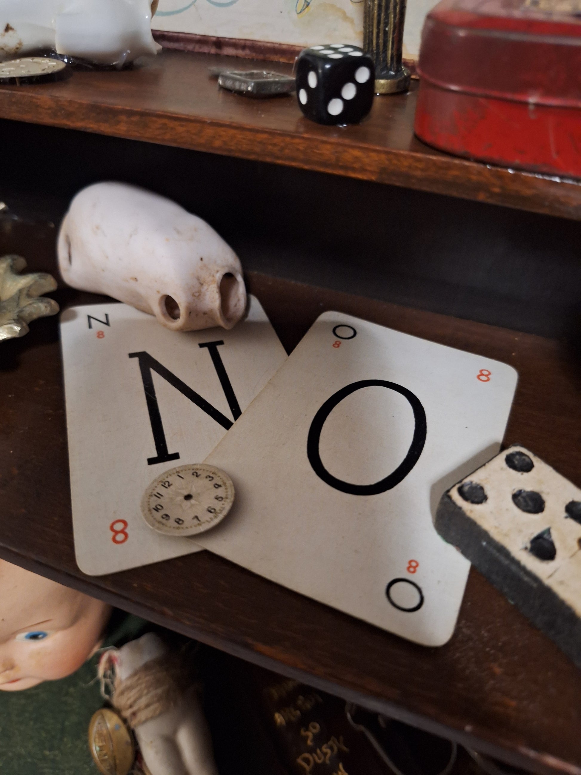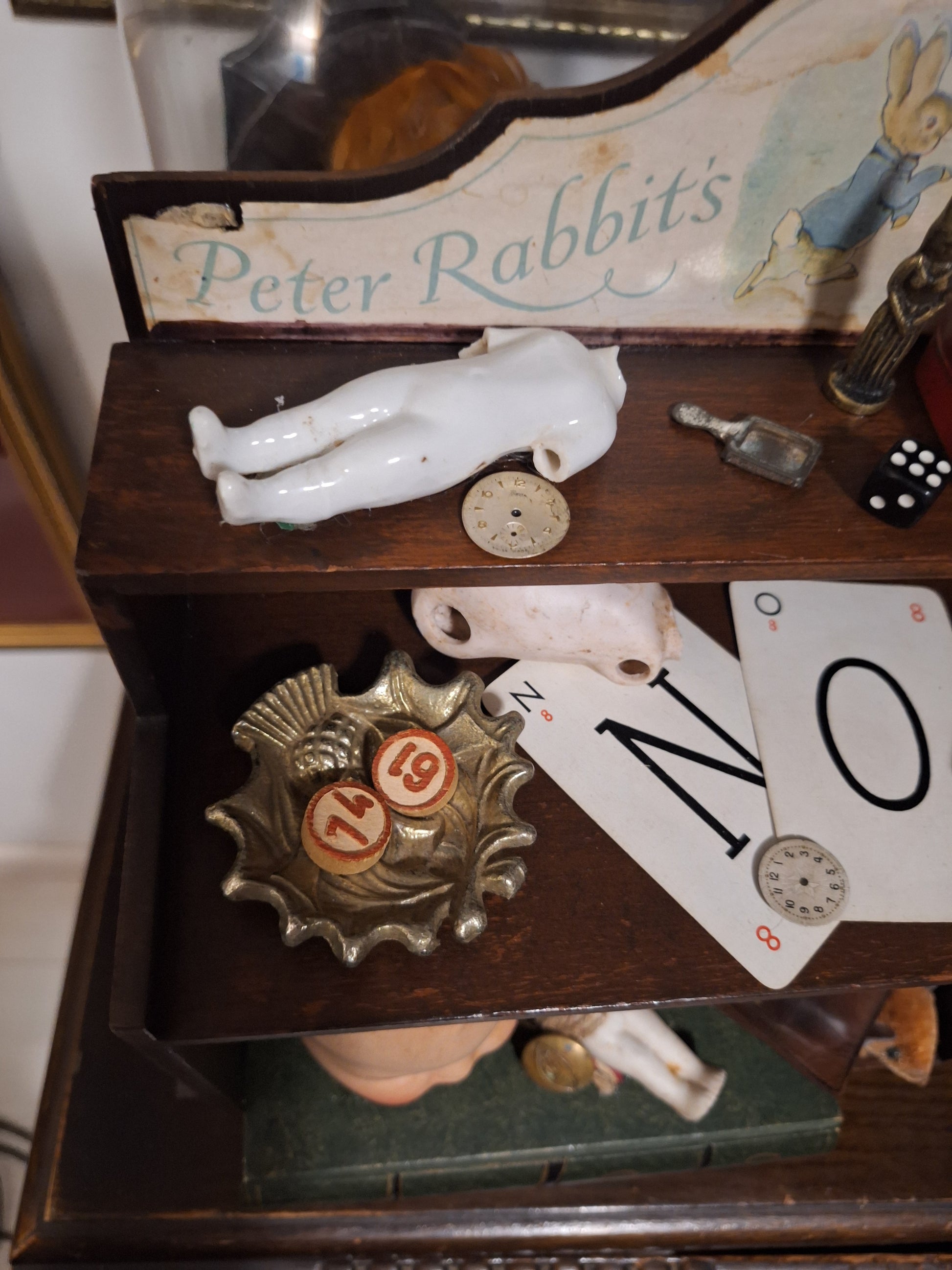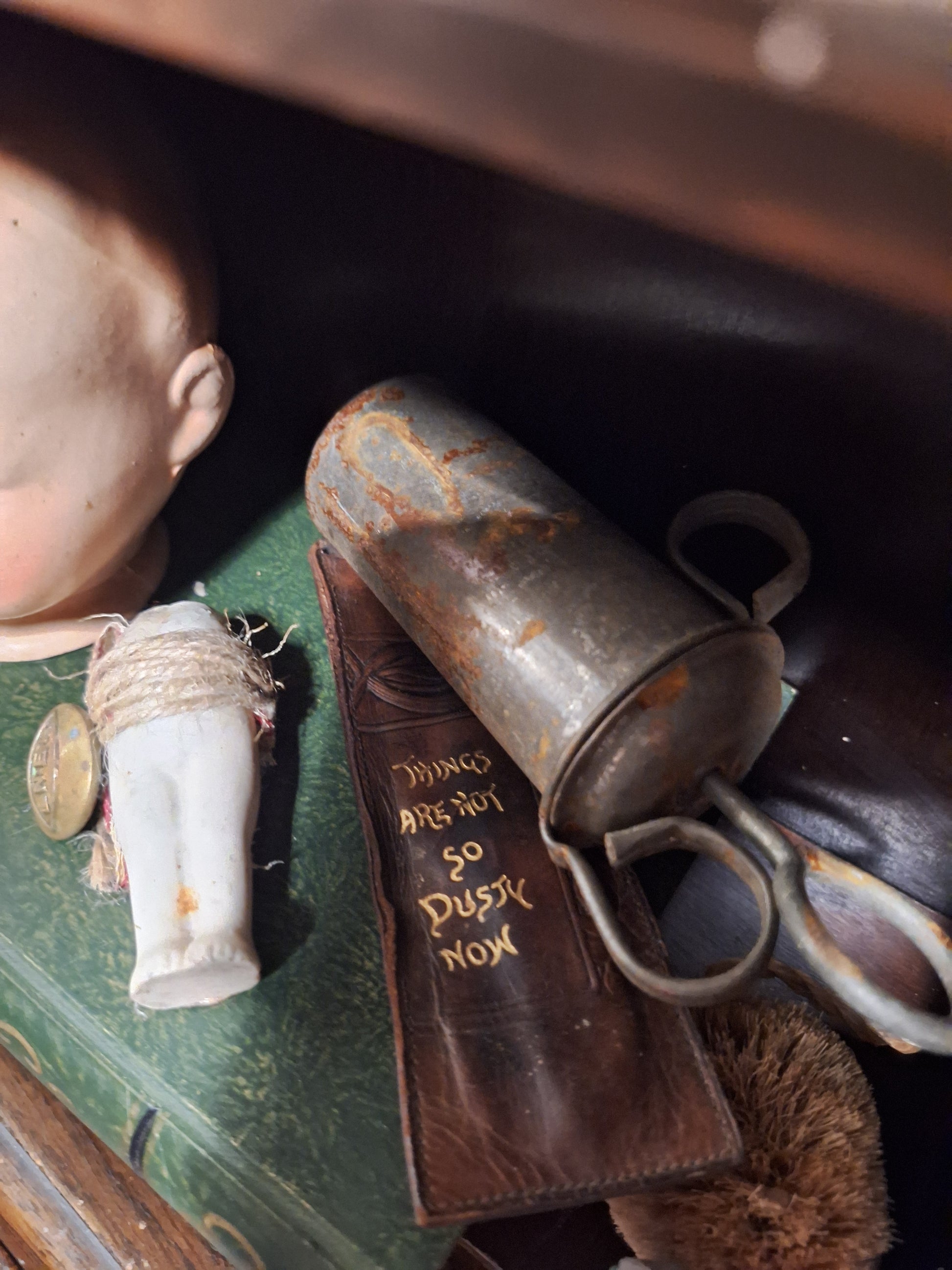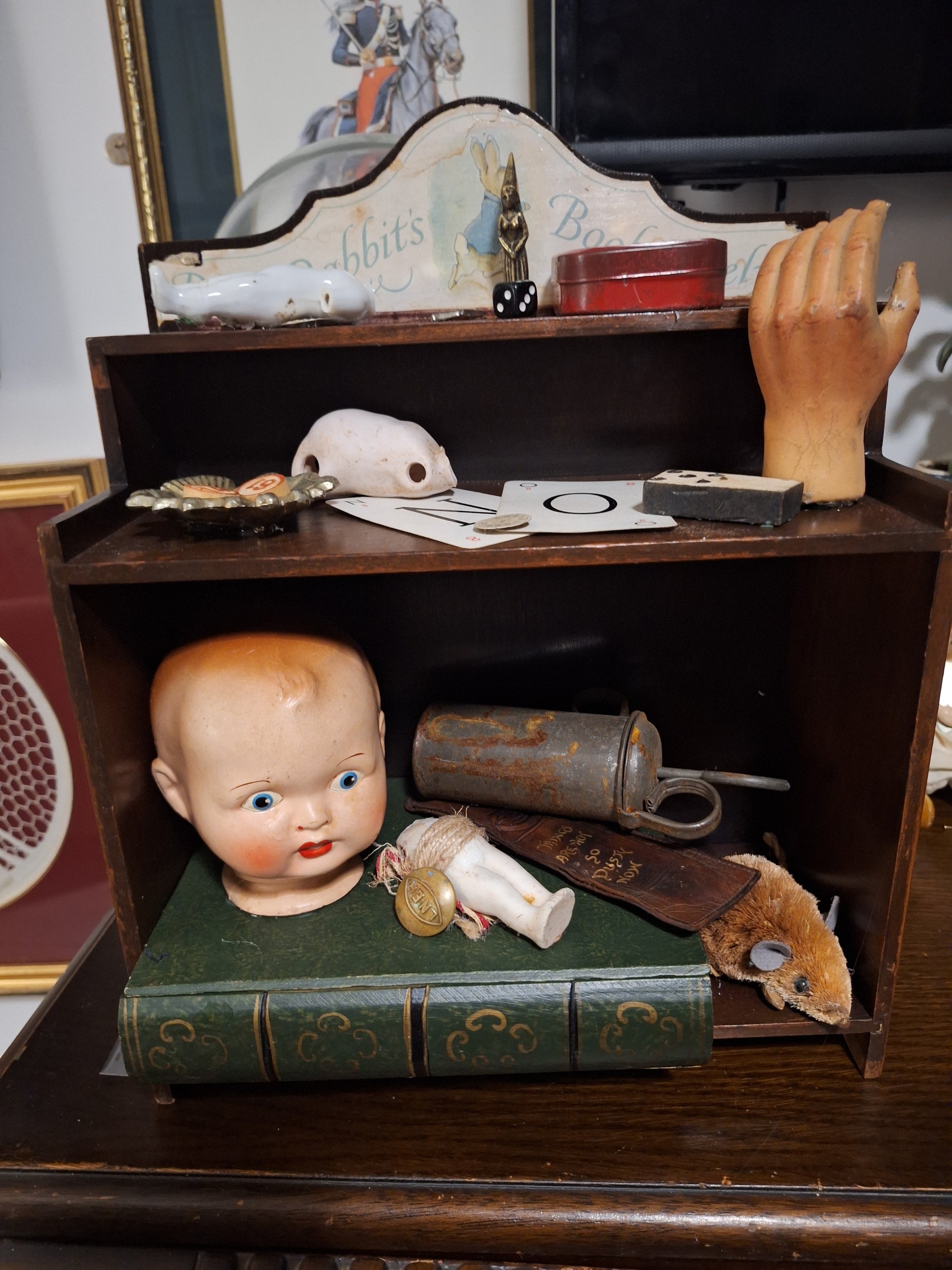 A whimsical vintage curiosity cabinet, created using lost found and forgotten about vintage curiosities.